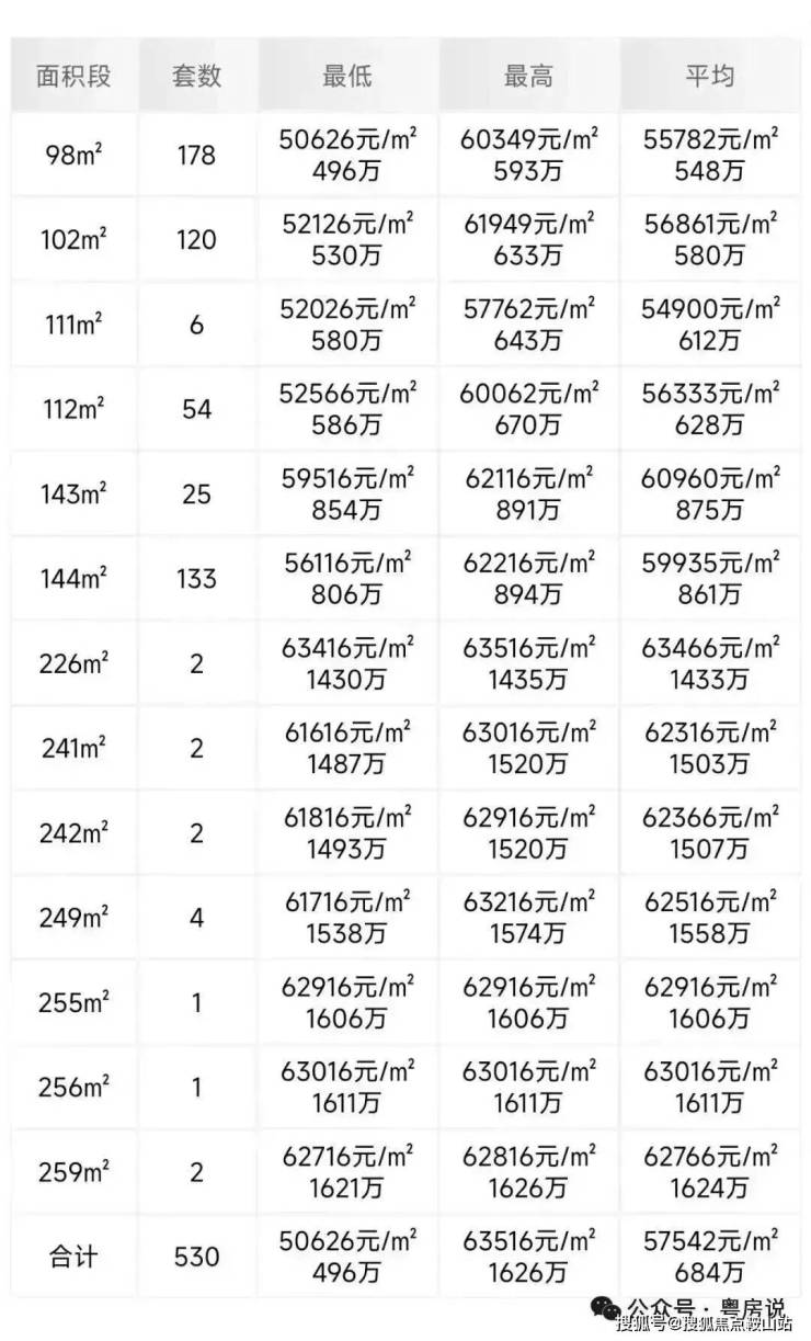 折后均价5.22万/㎡,折后单价4.58-5.72万/㎡,其中3房总价530万起,4房总价543万起,6房总价1212万起。