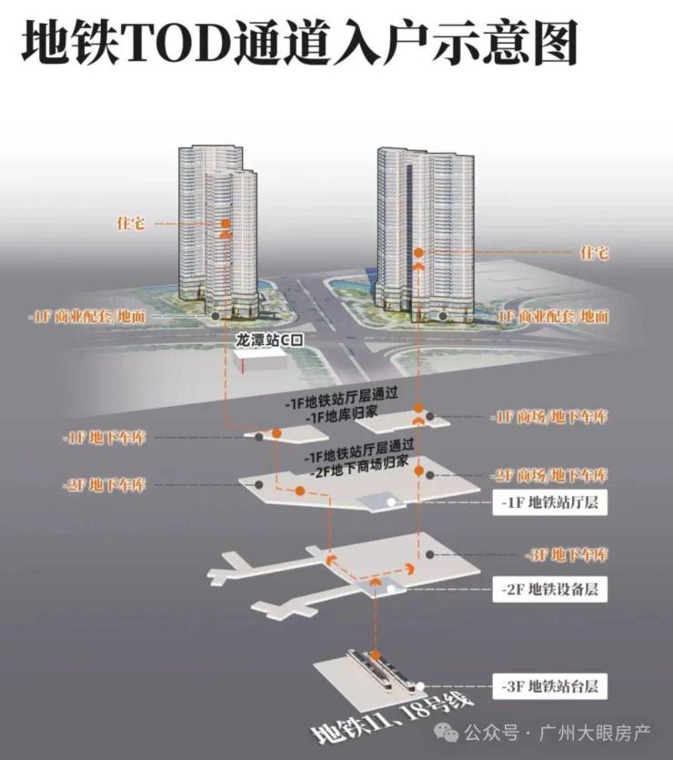 双地铁上盖,高速地铁18号线+广州首条大环线11号线龙潭站,其中11号线已开通
