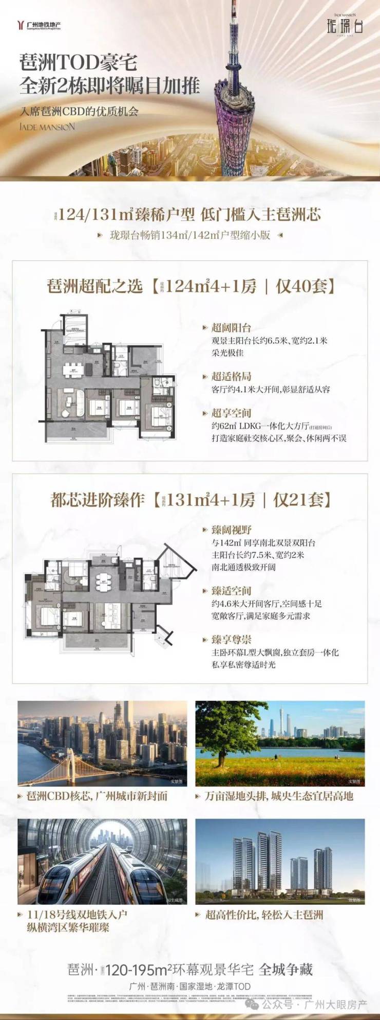 广州地铁地产·珑璟台推出最后一栋2#,主打建面约123㎡、131㎡4+1房。