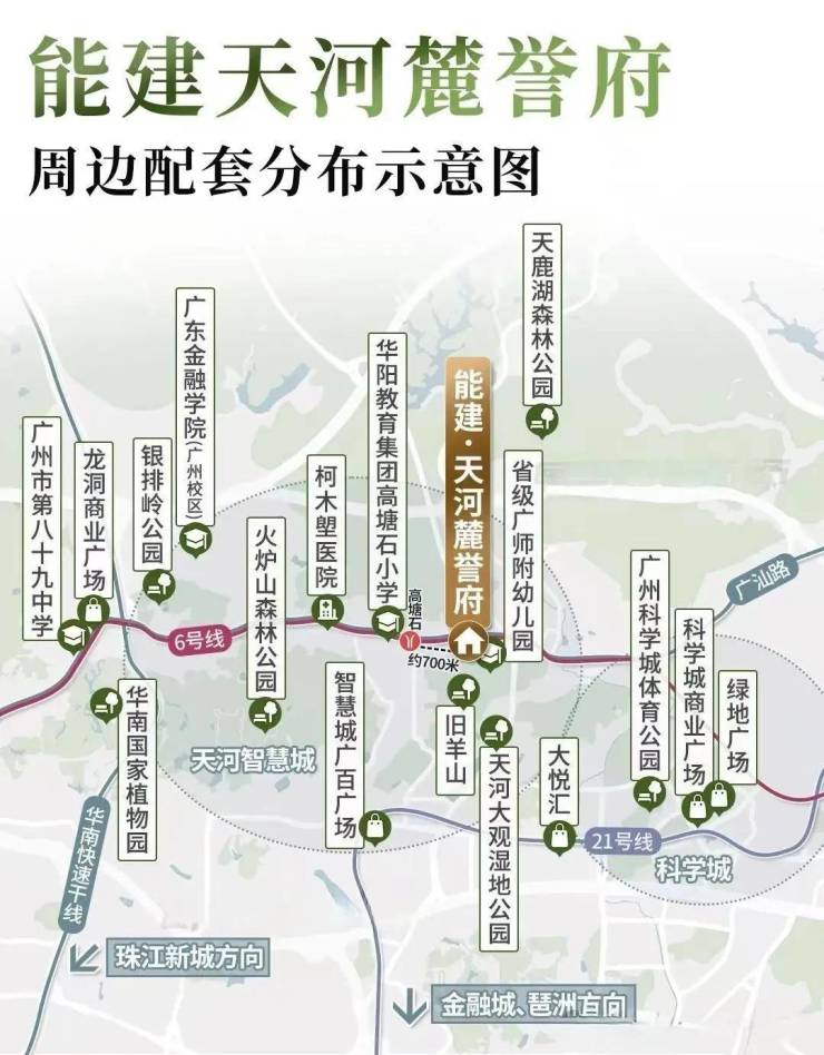 交通:步行700米即达6号线高塘石站,30分钟快速到达珠江新城、金融城、琶洲三大城市CBD,占据城市地铁资源。