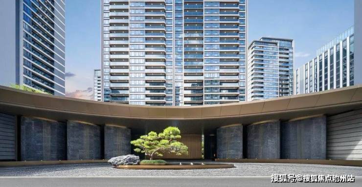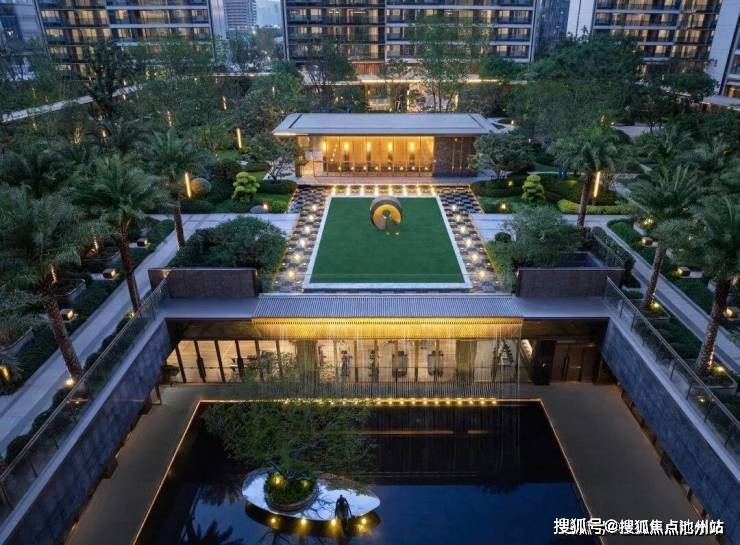 北区入户空间以 “三重院落” 构建礼序,第一进院落便是约60 米宽仪式感门楼前的镜面水院 ,这不是普通景观,而是温州人“以水为财”处世哲学的当代表达,粼粼波光温柔滤去 CBD 的钢铁丛林气息,完成从城市喧嚣到归家静谧的精神转译。