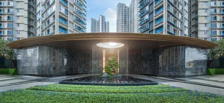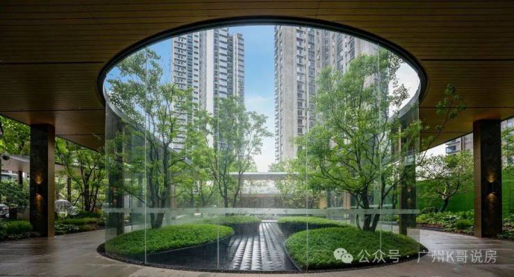 大门霸气横跨约61米,中间环绕了一圈朦胧水幕,正中央则挺立着一棵罗汉松,据说价值200万。豪宅尺度,拿捏得妥妥的。