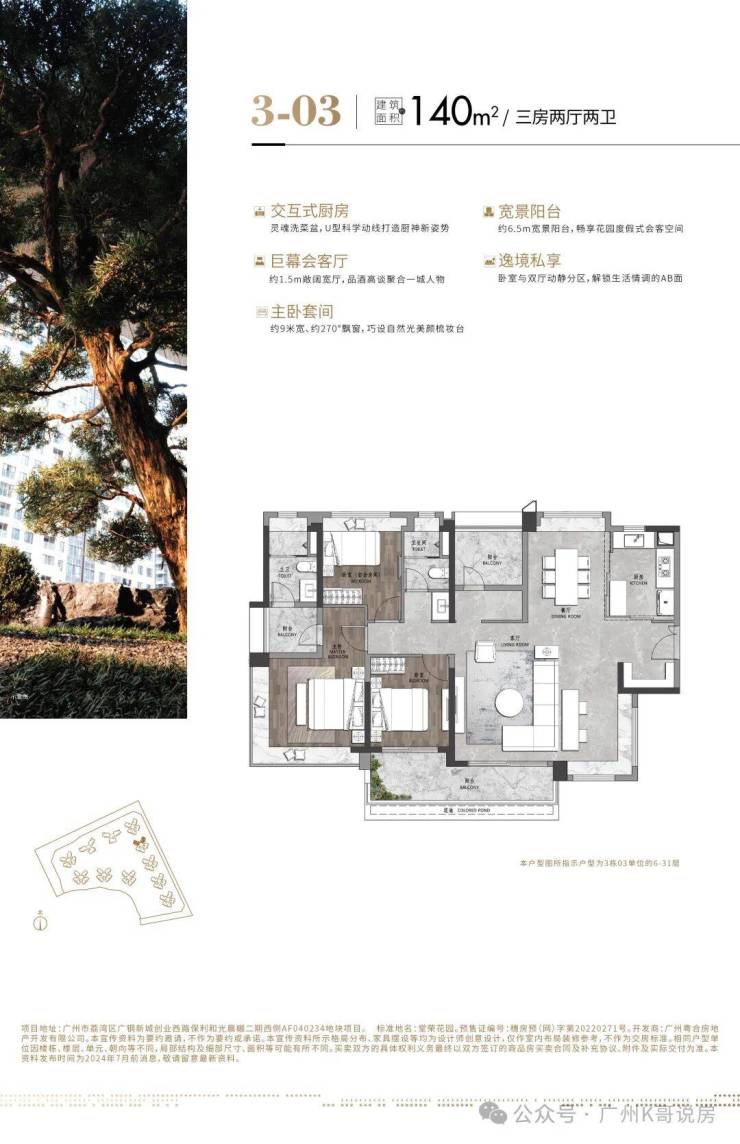 【IMAX尺度阳台】约8.9m观景阳台,中轴岭南式园林景观