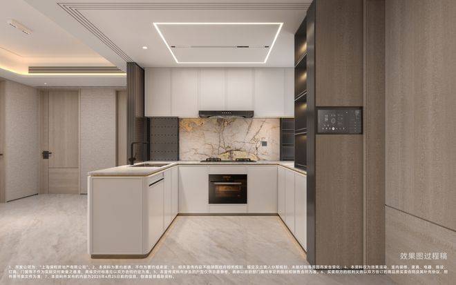 大开间的U型厨房,动线更加流畅,多人共同烹饪也游刃有余