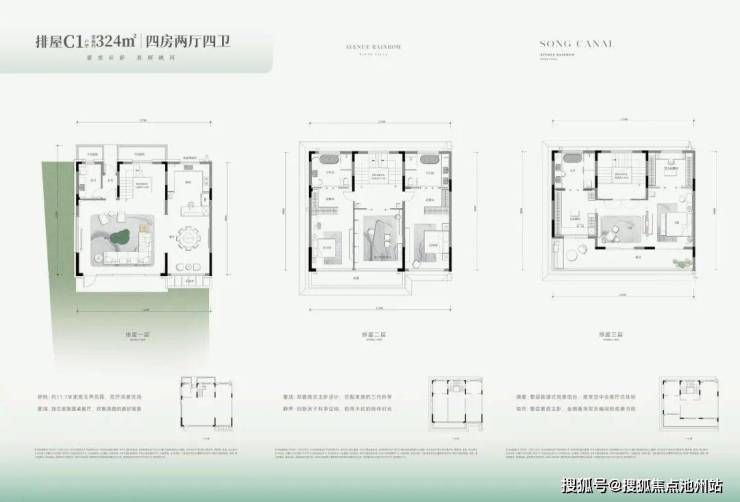 其建筑面积约为136-176㎡,控制得当。虽然产权面积被有效控制,但墅居产品该有的空间感却没有减少,前庭后院、地下延展空间、屋顶空间.....一系列空间,与市场上300㎡+产品在尺度表现上并无太大差异。