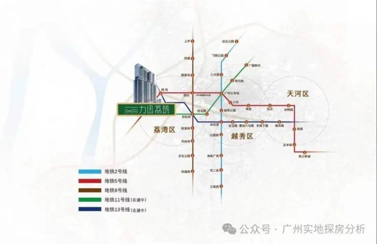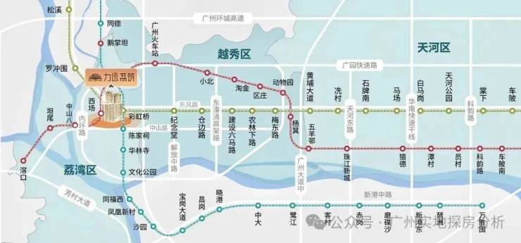 项目下楼即达地铁5号线与在建中的13号线二期西场站,2站即达越秀、9站珠江新城。