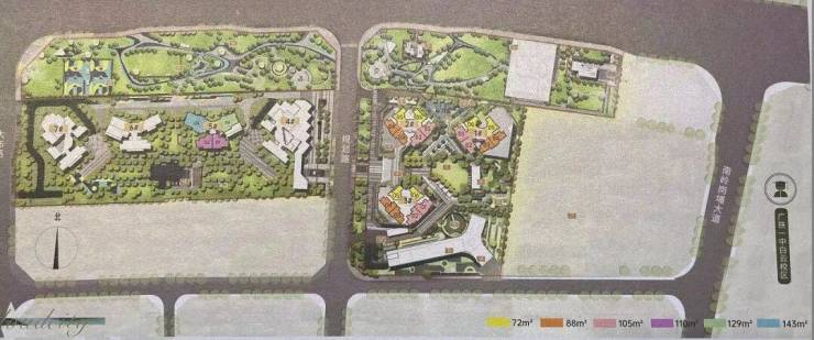 项目分两期开发,一期在售户型是72m²(东北/西北) ,88m²(1栋东南/2栋西南),104m²(1栋西南/2栋东南),目前1栋和2栋尾货,3栋的单位选择多一点。二期在售户型是110m²(东南/西南) ,129m²(东南),143m²(西南),目前二期在售的是5栋和近期新推的7栋。小区整体的单位充足,可以选择的空间大。