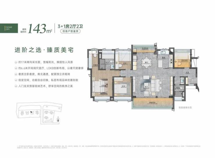 3. 143㎡,四房二卫户型