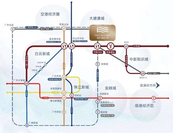新白广城轨(预计2025年通车)1站白云机场,南向通达东莞和深圳