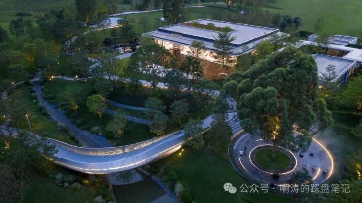 如此一来,大尺度建筑的压迫感,消失于无形,结合大面积的园林,反而在空间尺度上,带了舒适的感受。