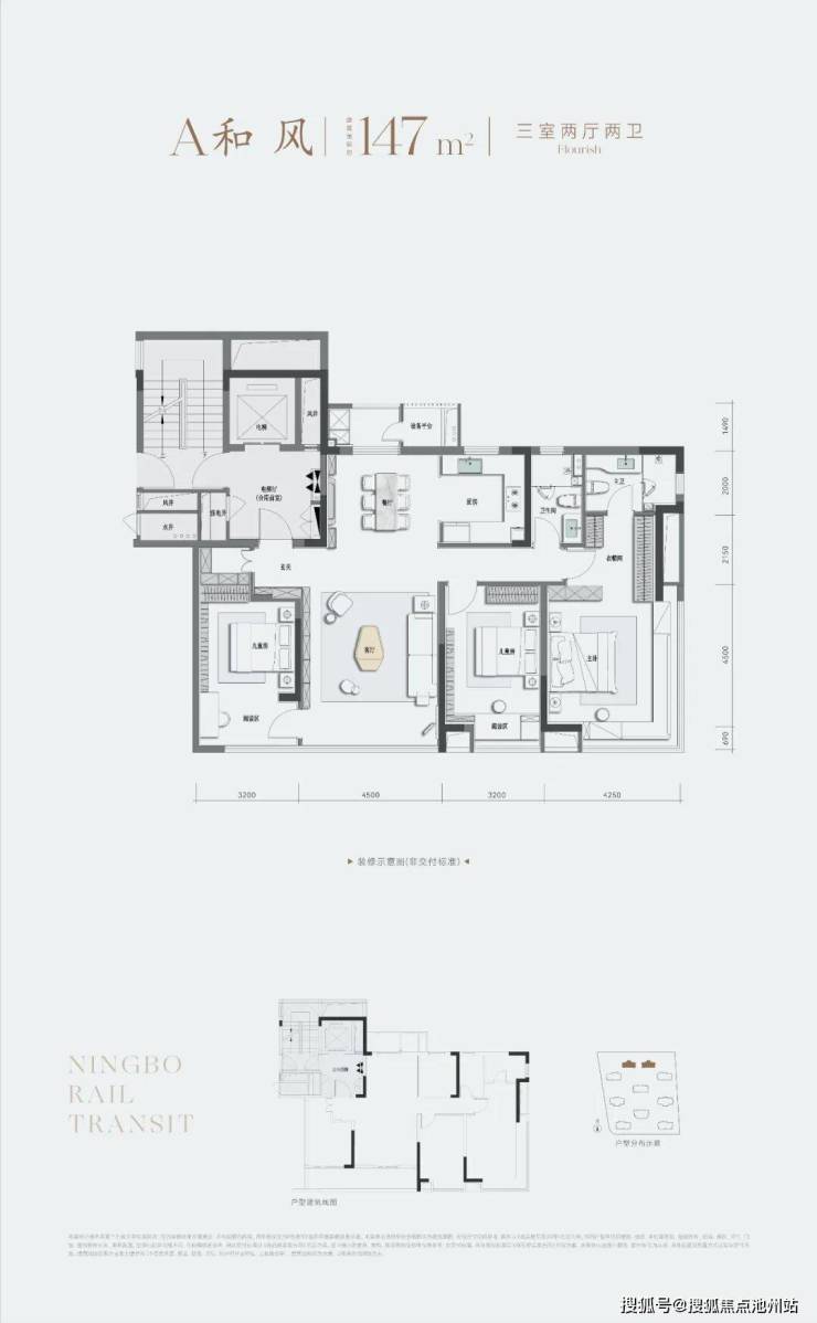 以建筑面积约147㎡户型为例。这不是一个简单的大三房户型,而是为追求生活尺度、私密舒适和极致收纳的品质家庭打造的理想型户型,是一个“平权生活”的创新范本。