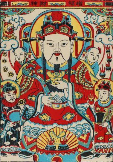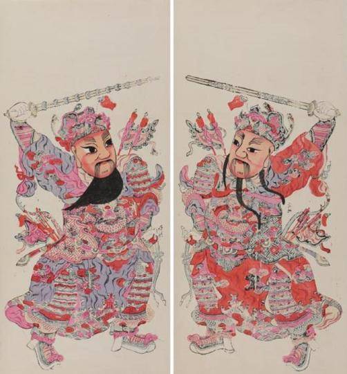 记者注意到,展览“神祇”版块展出晚清苏州桃花坞年画《尉迟恭秦琼》、清代至民国版佛山年画《天官赐福》、清版武强年画《增福财神》等;同时,“人物”版块的展品则有清代杨柳青年画《儿童乐境》、民国绵竹年画《执伞女子》等。