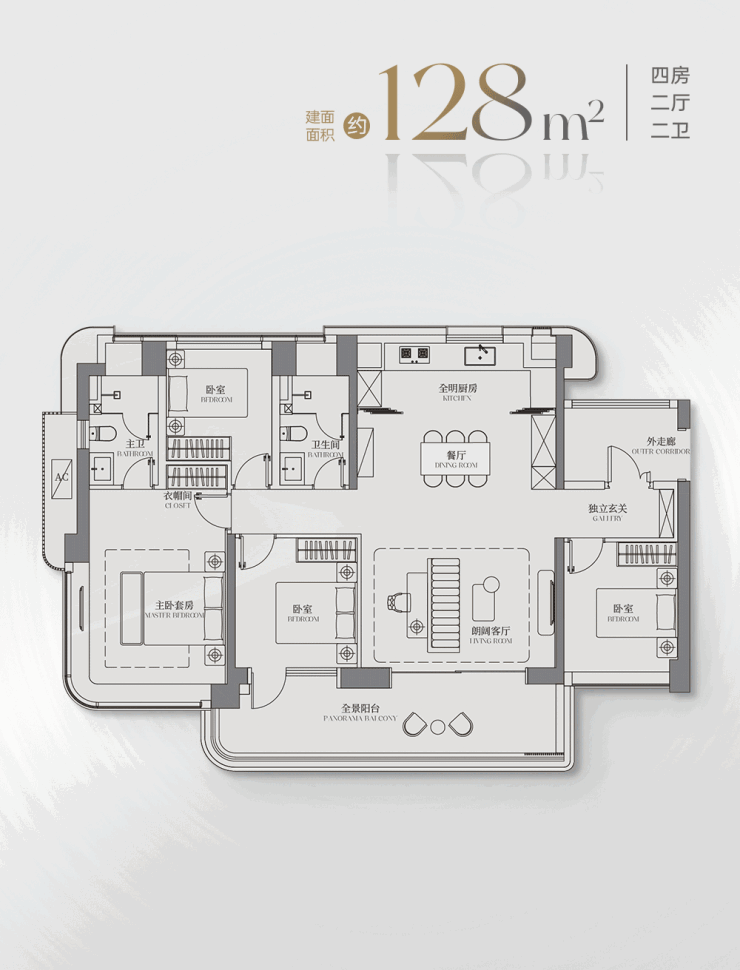 户型:建面约128–238㎡,使用率超100%,138㎡以上户型望江率约90%,大户型100%直面珠江;