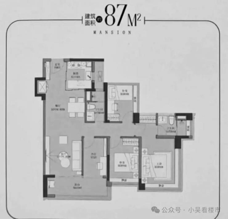 建面87平3+1房,跟云悦88平几乎一模一样。