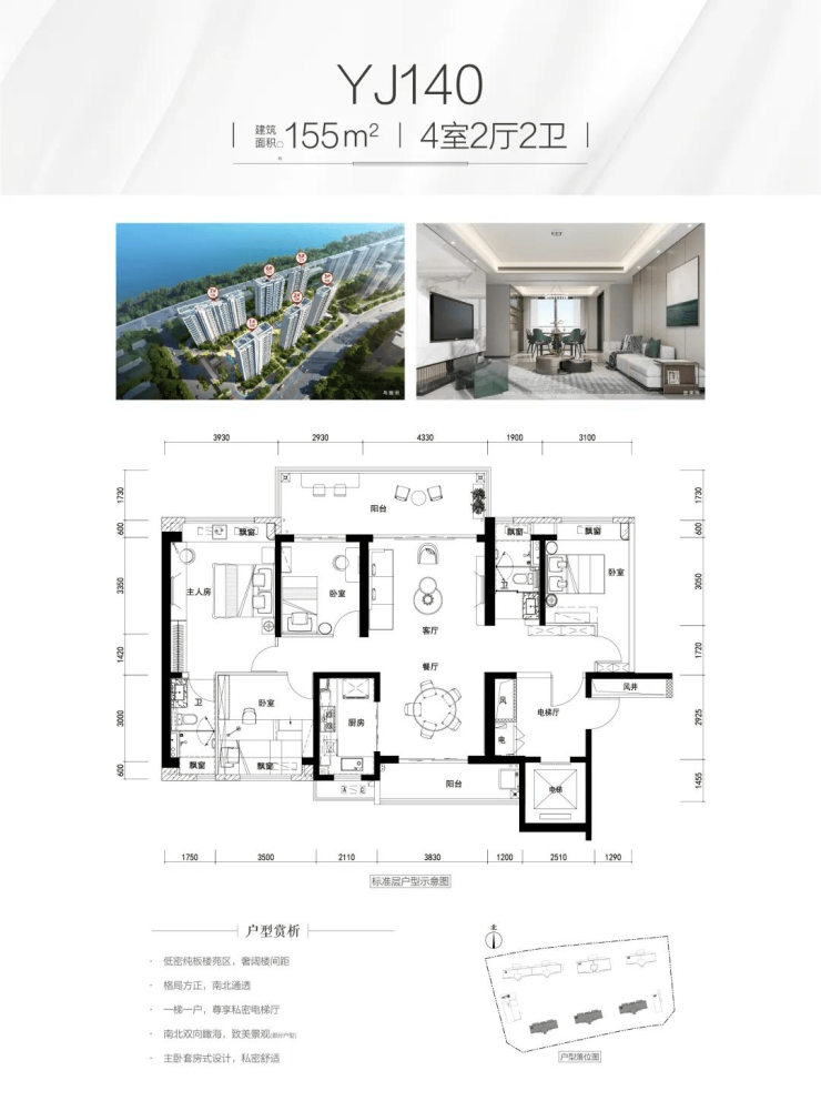 进阶奢适宽居大宅,舒享户户双阳台,约3.15米层高(部分户型),YJ170/260奢配双海景套房(部分楼层),视野通透开阔,悉数收藏每一幕与家人共度的海居日常。