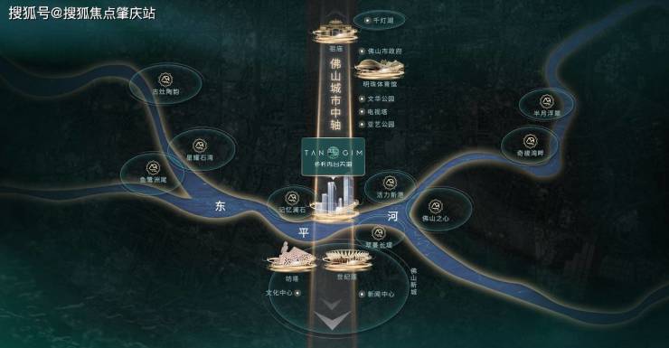 ①地脉:佛山城市中轴正脉,串联佛山自北向南地标盛景,城市制高点俯瞰城市发展;