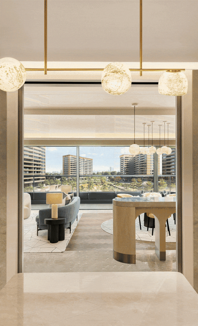 这次,站在新样板房的阳台,我所看到的景象已经和之前不太一样。超大面宽玻璃溶解掉了室内和室外之间的屏障,视觉被延伸。