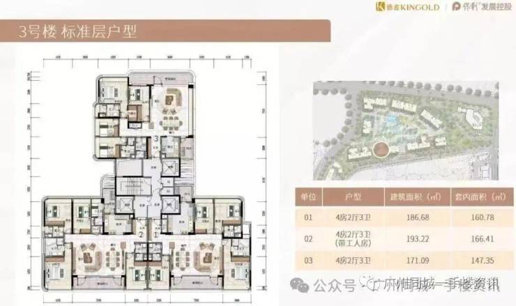 房型的话,覆盖约124平三房两卫至238平四方三卫(带工人房)。124-133平三房,分布在7#01/03单元、4#03单元、5#03/04单元,也就55套。