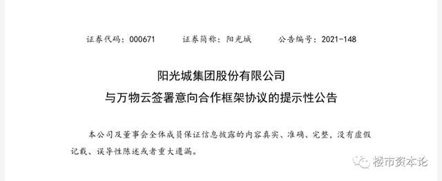 就在一周前,阳光城还大手笔的将旗下物业板块与万物云进行股权合作,并联手打造“万物阳光”这个新品牌。