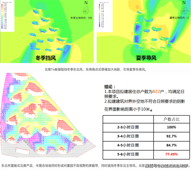 设计充分利用景观优势,采取独栋板楼“顺列错排”布局,形成向城市开放的视线通廊。在楼栋布局严格遵循南北朝向的前提下,确保所有楼栋可尽享西侧湿地公园的景观,楼栋间的景观组团将住区景观空间与城市生态空间有机融合,实现在地化的共生共享。总平面通过错落有致的布局设计,有效避免了住宅小区常见的视野遮挡问题,在确保开发强度的同时,楼栋间获得了最大化的视觉开阔度。设计通过风、光模拟使住区获得极佳的自然日照和空气流通条件,住宅空间的通风和采光效果得以优化。在最大程度上提升了基地空间的利用效率,营造宜居的生活环境。