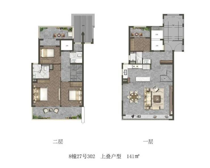 建筑立面,汲取广富林文化精髓再造东方屋宇,采用渐暖色石材、银灰色及香槟色铝板和涂料的组合,带来厚重与轻盈的平衡,在彰显文化豪宅的同时又包含国际风骨,整体呈现诗意东方之美。