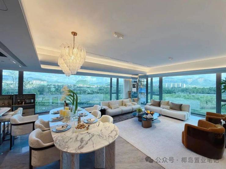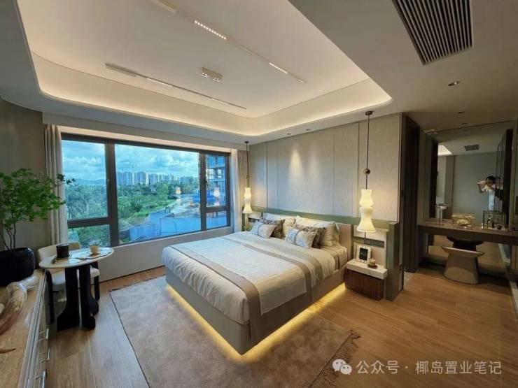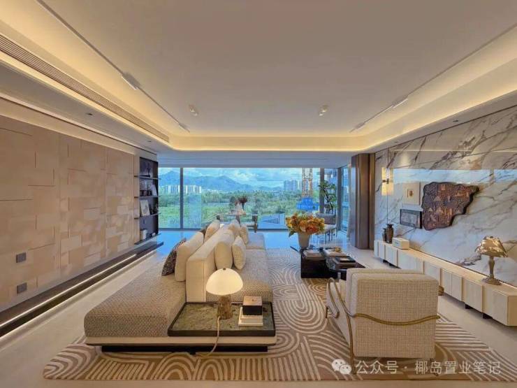 半山国宾视野,执掌山海双重霸权: 项目凭借无可复制的海拔与无遮挡视野,可同时俯瞰海棠湾湛蓝海景、远眺蜈支洲岛、纵览群山叠翠与免税城璀璨灯火。这种将海洋的浩瀚、山林的幽静、城市的活力尽收眼底的视觉特权,定义了其作为国家海岸封面藏品的绝对地位。