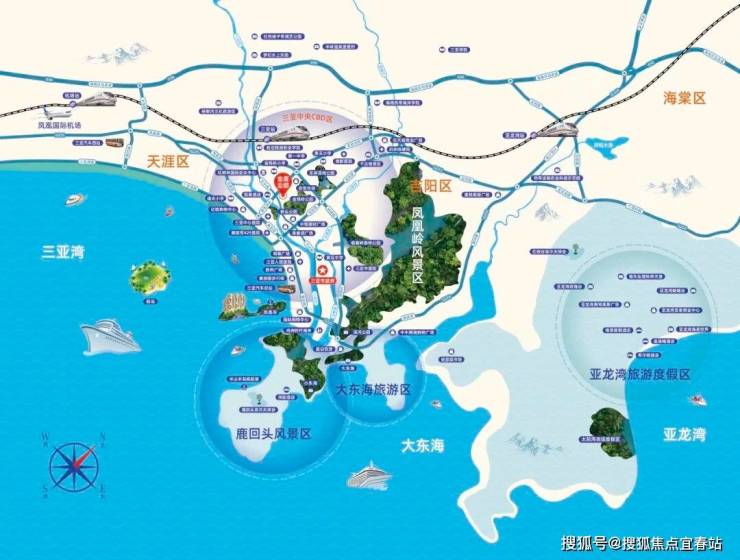 项目近临金鸡岭路、三亚河东路;城市中轴线凤凰路、鹿城大道穿梭而过;城市主干道迎宾路、解放路、落笔洞路、三亚湾路等交通网络;2公里三亚动车站,5公里环岛高速出入口,10公里凤凰机场,城市轻轨及多条公交路线停靠。立体交通网络,出行便捷无忧。