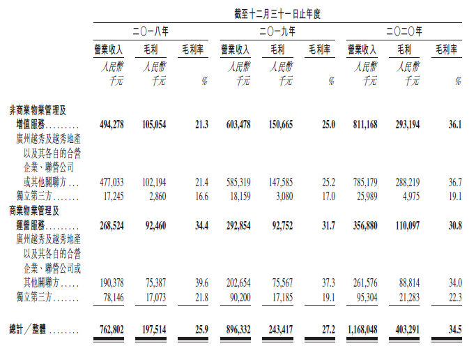 目前,越秀服务的商业物业收入占比达到30%,地铁物业收入占比达到15%。在此次IPO中,越秀服务着重突出了自己的TOD综合物业管理模式的优势,并称其未来增长潜力巨大。
