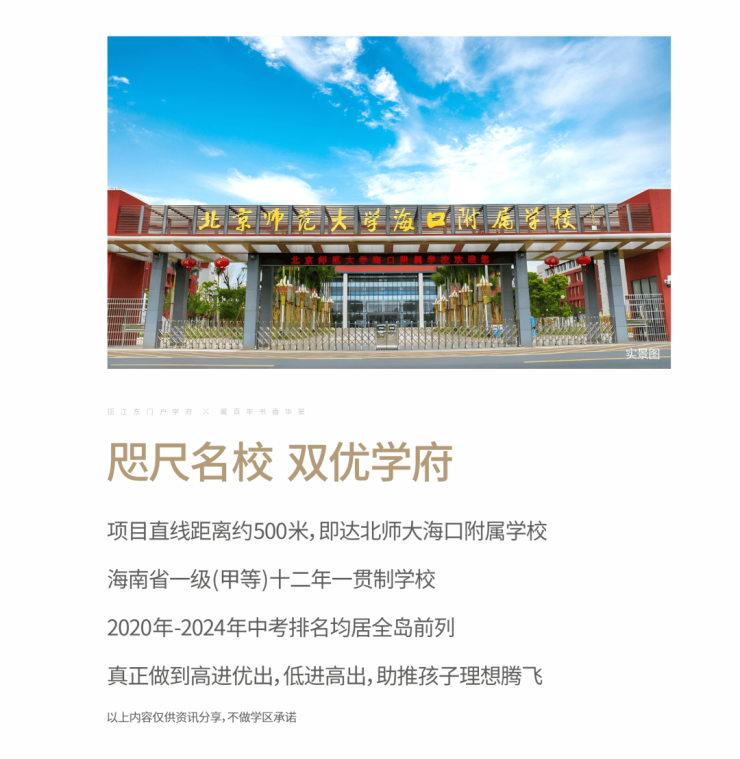 学区:北师大海口附属学校(距项目约500米,划片学区),自建幼儿园