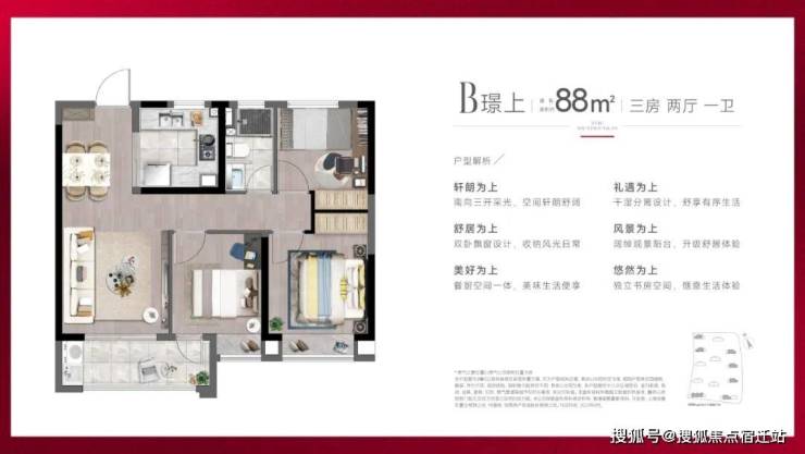 混龄光环,儿童乐园为核芯,实现游戏、看护、社交一体化的家庭亲密场。 2大架空层,童趣天地、四点半课堂、健身中心、休憩会所 4 大主题空间,让社交生活场景有了更多选择。产品方面,项目 主推建面约88-98㎡精装3房, 功能性和品质感兼具。