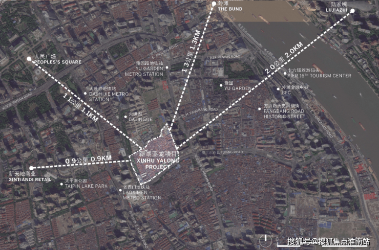上海壹号院位于中华路和复兴东路交汇处,总建筑面积约23万方,距离新天地直线距离约900米、陆家嘴直线距离约2公里、外滩直线距离约1.3公里。