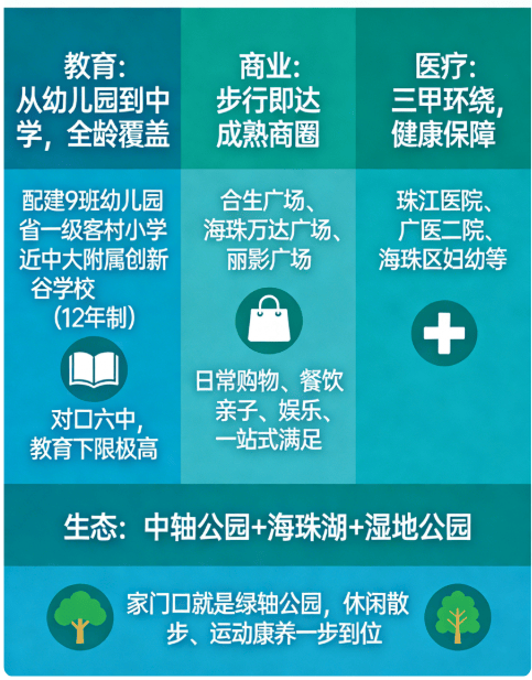 占位海珠6公里中央绿轴,承接珠江新城、琶洲、天河CBD外溢,是广州塔以南近十年招拍挂最核心地块,资产价值天花板清晰。