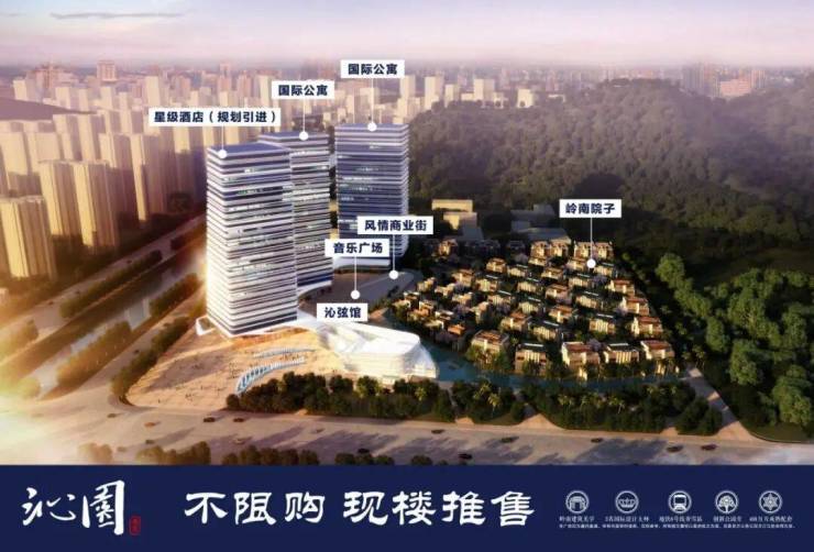 项目占地 8 万㎡,总建面 25 万㎡,配建 6000㎡沁弦馆文化中心、规划 5.3 万㎡五星级精品酒店、8.6 万㎡文化创客空间、3000㎡商业街及大型音乐广场,满足购物、休闲、娱乐、办公等多元需求。