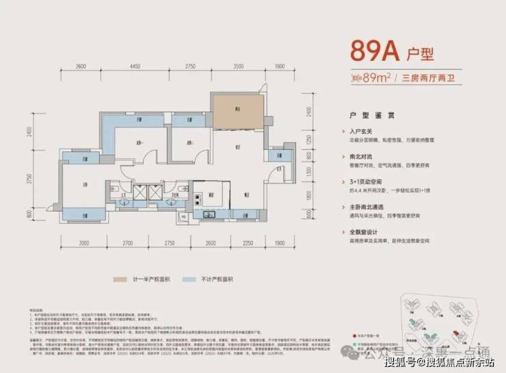 89㎡的3房2卫,折后总价270-317万/套,折后单价2.98-3.5万/㎡。