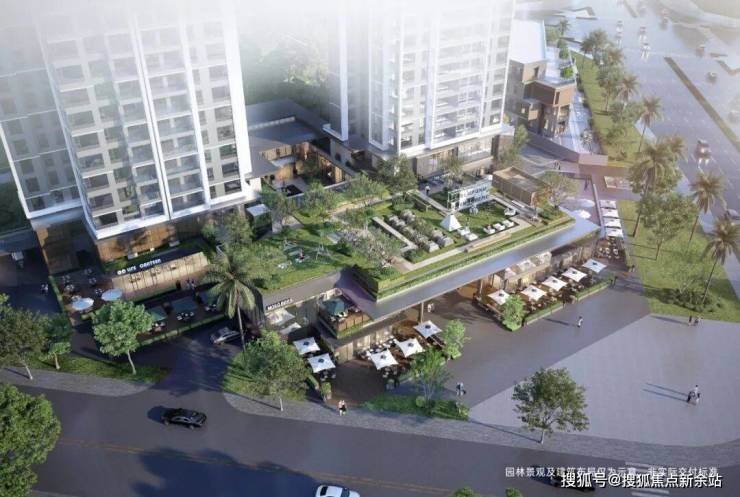 光明首创的”抬高式檐上浮岛花园露台“,打造约1000㎡业主私享花园露台,位于商业街区顶层,约1000㎡的中央车站,社区主入口悬浮立体式入户门院,仪式感归家动线。