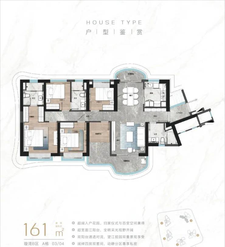 特点:一线江景,南向大面宽,改善与豪宅兼具。