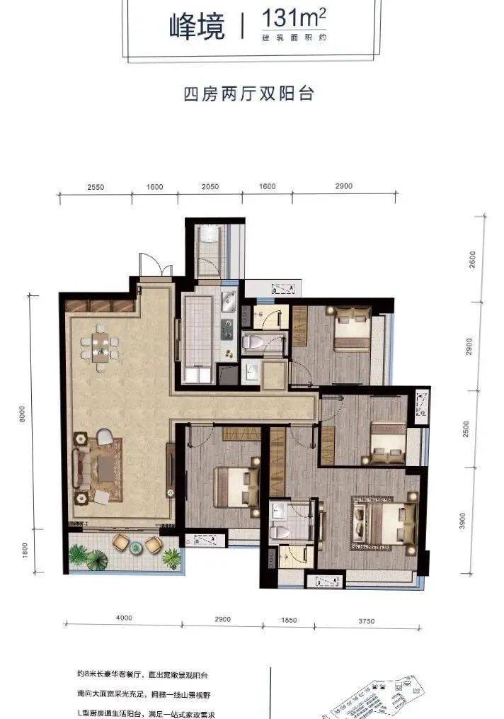其建面 约131-143㎡大平层四房户型采用全南朝向,且这远优于市场上普通的阳台朝南。