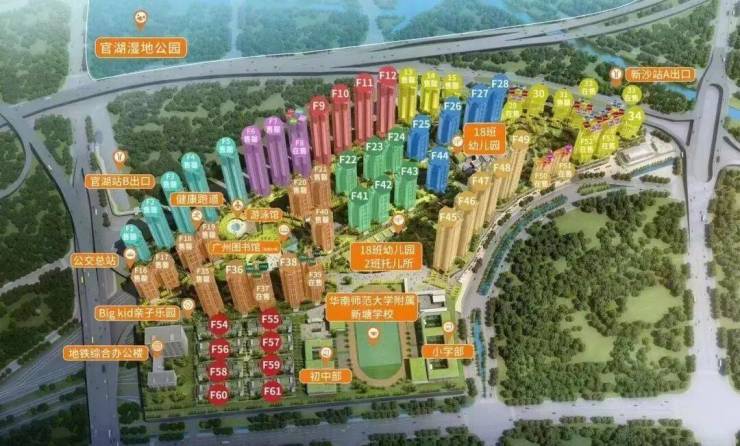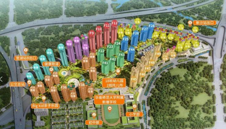 小区里面自带9年华附公立名校教育(全名:华南师范大学附属新塘学校),且由华南师范大学选派原华师附小本部副校长【吴启航校长】,亲任新塘华附校长。