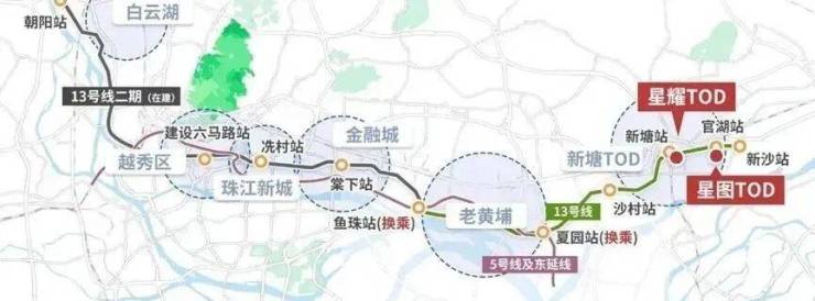 当前13号线,星图的官湖站比华润公园上城的沙村站,距市区远3个站,约10-15分钟的乘车时间。
