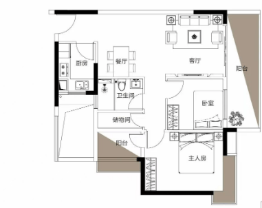 52㎡小户型洋房:3.6米层高,7米餐客双厅,舒适主卧带1.5米大床,独立三分离卫浴,配置品牌四件套的园景明厨,超大景观阳台。