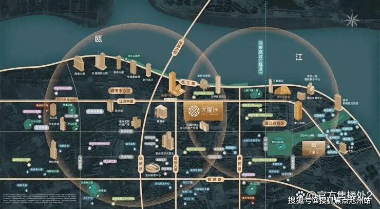 项目深谙产城共生之道,规划有180米超甲级写字楼与星级酒店组成的商务双塔,其流线型外立面暗合瓯江潮涌之势;约10万方购物中心采用"垂直街区"概念,通过空中连廊与下沉广场实现多维交互;住宅区则引入"悬浮花园"设计,户户270°环幕视野将大罗山景与塘河风光尽收眼底。特别打造的科创孵化平台,如同精密齿轮咬合着温州"一区一廊一会一室"创新格局,为城市能级跃迁提供持续动能。