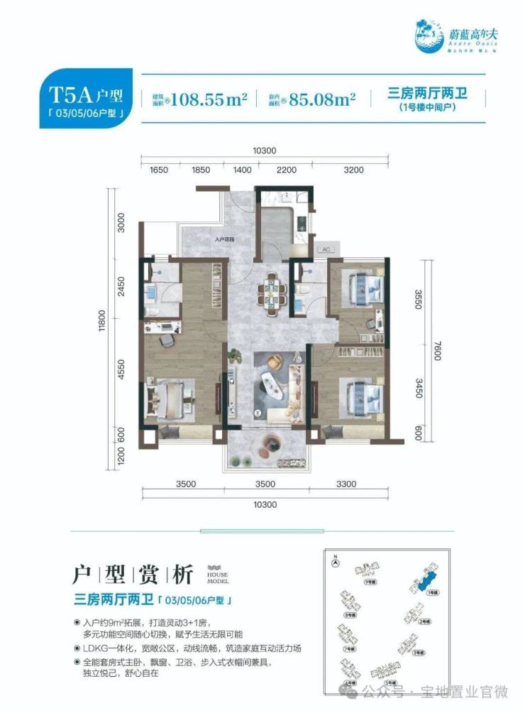 在海南清水湾这片藏着 “会唱歌的沙滩” 的天赋之地,蔚蓝高尔夫三期以 1.1 低容积率的墅质洋房、70 年产权现房优势