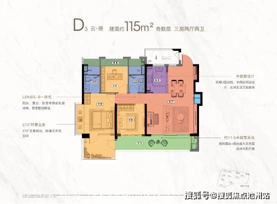 建面约115㎡(三房两卫)|115边户满足130的空间居住体验|露台设计(分奇偶层)