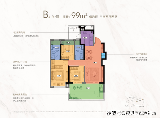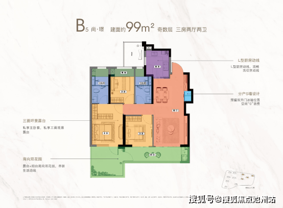 建面约99㎡(三房两卫)|主城可入手的低门槛四代宅|露台设计(分奇偶层)