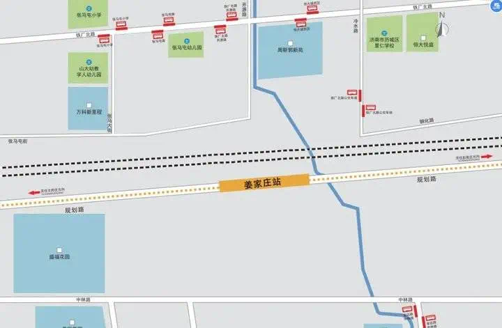 B口:胶济铁路南侧,距离舜华北路500米 (车站西)