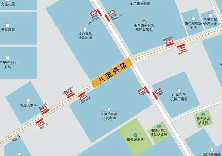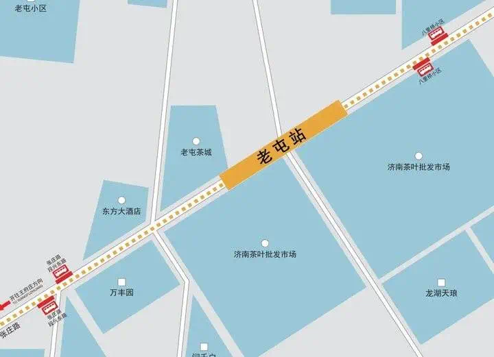 B口:济齐路与张庄路交叉口以北150米路西(堤口果品批发市场东门)
