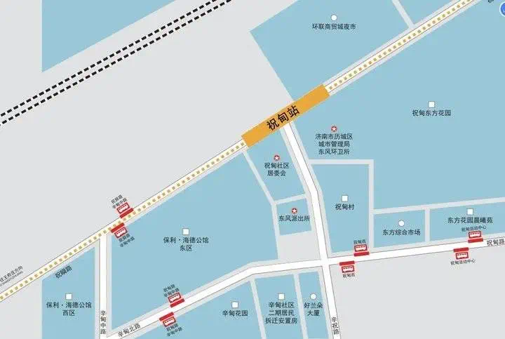 G口:辛祝路与祝舜路交叉口西南侧(保利海德公馆东区-北门直行281米)