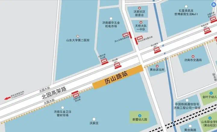 K口:北园大街与历山路交叉口以西400米路南(山东大学第二医院对面)