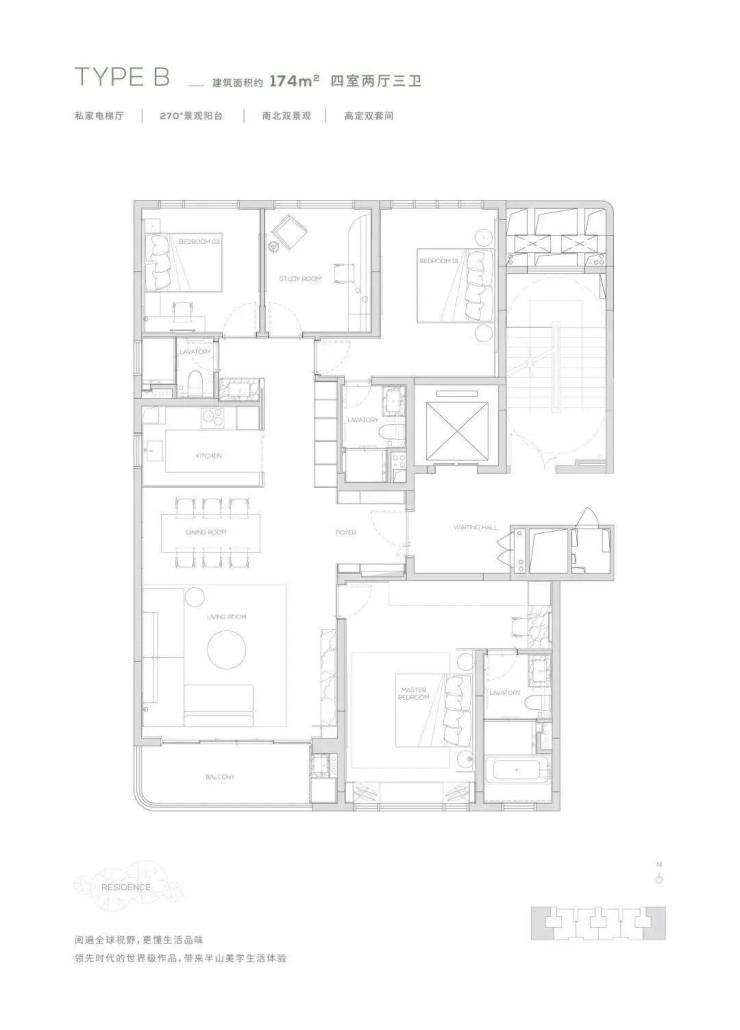 观景双阳台-高定双套间-私家电梯厅-双洄游动线