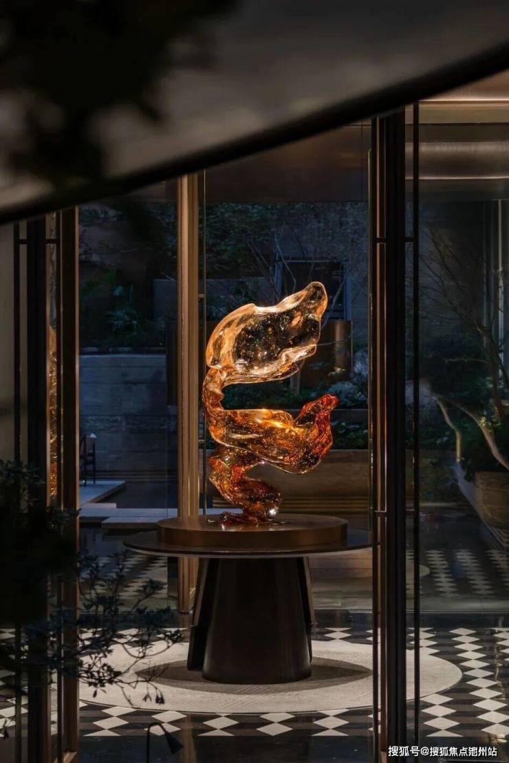 在生活馆里,你能看到发光石材的背景墙,瑰丽酒店同款壁灯、昂贵的黄虎眼奢石制作的接待台、同源瑰丽的风泥客石屏风、手工敲荔枝面……